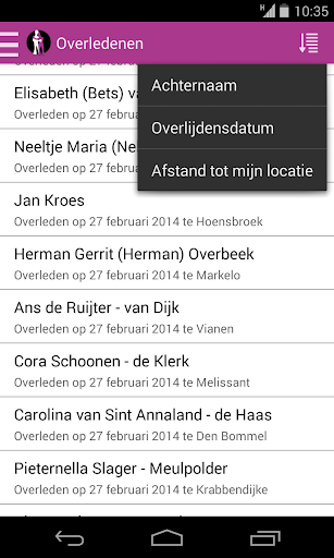 - Familieberichten per overledene te bekijken vanaf april 2006, op naam (sorteren op achternaam, de overlijdensdatum of eigen locatie)
