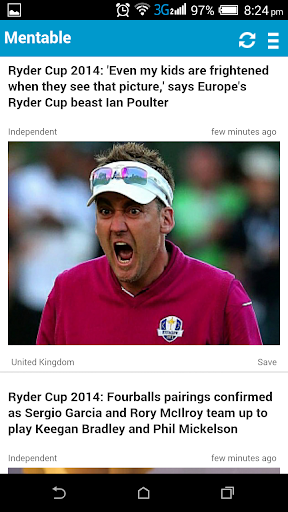 The Mentable interface is simple and each update comes with headline, quality image, time of publishing, publisher of the news, and the country where the news update is coming from.