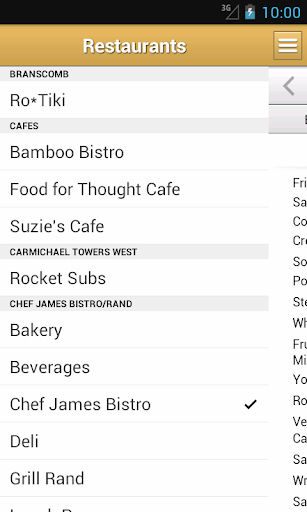 - Change Restaurants by tapping the List button in the upper left to reveal the Restaurants List living in the tray below