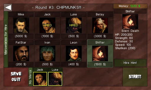 Chose the members of your team from a group of unique personalities and enter the battle zone. Set individual movement and attack paths for each of your mercenaries and ambush your enemies. Try yourself at the 10 different levels each with different enemies and environments. Between the levels you can use the rewards to hire new members and refill your tired soldiers.