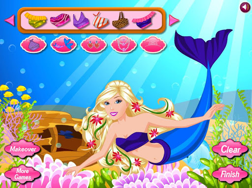 Mermaids live underwater, surrounded by corals, fish and of course, other mermaids and merman. But every so often they do like to swim ashore and enjoy the sun and the sandy beaches. Dress up the mermaid as she swims in the ocean but when you're finished, she will model the outcome on her favorite beach.