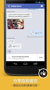 • 群組聊天:新增和移除群組參與者、變更群組名稱以及新增個人資料照片,向您的朋友表達情緒以及群組狀態。