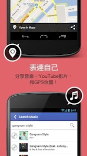• 在訊息或群組聊天中即時分享您的位置。也請看看 push-to-talk (隨按即說) 錄音以及 walkie-talkie (對講機) 功能。
