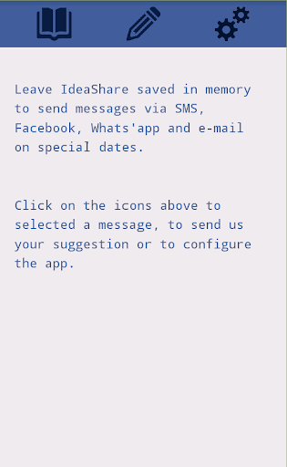 Share with friends and family, or just be inspired with the best messages and ideas on GooglePlay with IdeaShare. You can edit the messages before you send them via SMS (text message), e-mail or any social network available in your cellphone or tablet. The messages are available in English and in Portuguese.