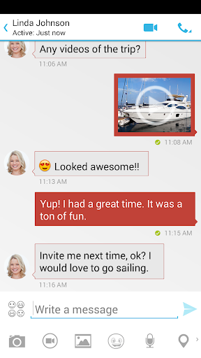 Love this app, I use it everyday This is my default SMS/MMS application. I love the emoticons and stickers. Best video chat experience out there. Great job!