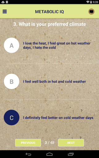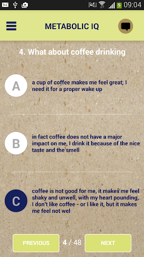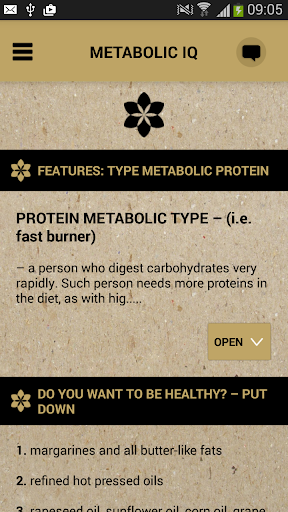The application also includes principles of nutrition tailored to your type of metabolism. If you decide that you gave answers under the influence of others or in accordance with the principles of nutrition, which until now you thought was healthy, and now you are in doubt - you can always repeat the test and get the correct result for your metabolic intelligence (MIQ).