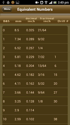 • Carry metal specs and handy equivalent numbers in your pocket.
