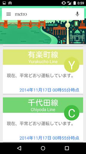 ※東京メトロの事情により、予告なくアプリおよびアプリで表示される情報の提供をとりやめることがあります。
