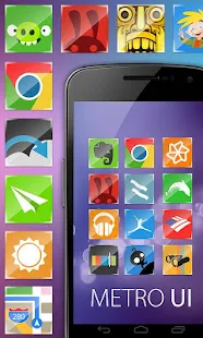 Metro UI Go Apex Nova Theme is a creative concept icon pack for many popular Launchers. This theme works seamlessly with Go Launcher and completely compatible with Apex Launcher, ADW Launcher, Nova Launchers and others.