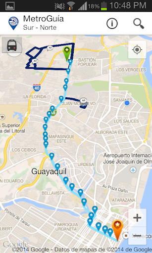 MetroGuía esta dirigida no solo a los actuales usuarios de la Metrovía sino tambien a todos los ciudadanos de Guayaquil y personas que visitan nuestros atractivos turísticos. La aplicación cuenta con las rutas actuales de la Metrovia (Articulados-Alimentadores-Express), función de localización por GPS y diferentes modos de busqueda (Sector-Parada).