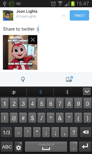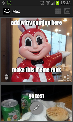 Portable way to create and share meme using phone camera or picture gallery.