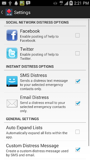 + Option to send distress message via SMS to your selected emergency contacts.