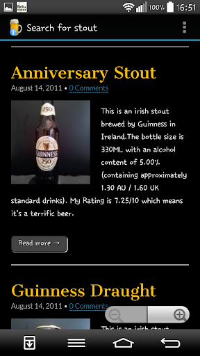 One or more new beers are usually added daily and you will receive a notification of these as they are posted. A picture of the beer bottle and the beer in a glass is also shown in the notification (Jelly Bean onwards I think). You can swipe away the notification if you aren't interested in that particular beer, vote for the beer (with the button below the images) if you've had the beer before, or click it to read more about it and a few, brief comments from myself (I don't write pages of waffle about each beer!). Note you must open the app after installation to register for these notifications.