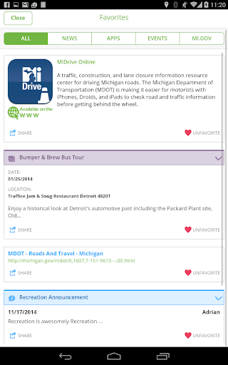 Favorites – Save the News, Events, Apps and Michigan websites you want to come back to often.