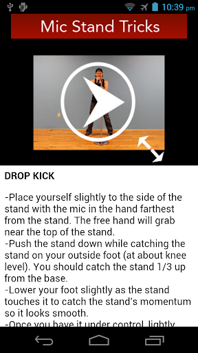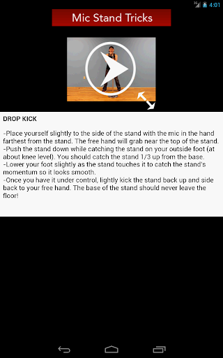 This is a great app to learn some fantastic mic stand tricks you can use on stage (9 in total)! There's at least 1 or 2 you've probably never seen before, so give it a try! Each trick contains a full description and video!