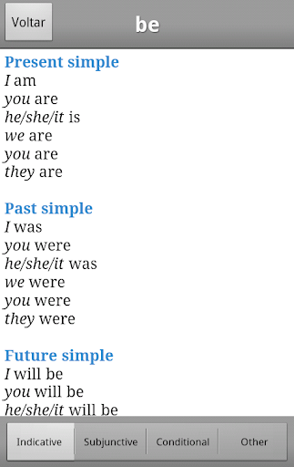 • conjugação completa de todos os verbos da língua portuguesa e inglesa do dicionário;