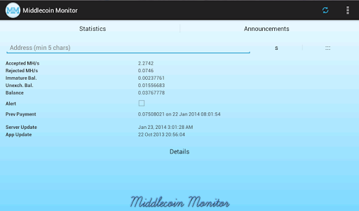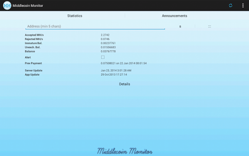 An easy way to monitor your miner stats from Middlecoin. The main features of the app include: