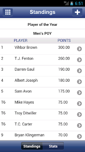 • Season standings and stats.