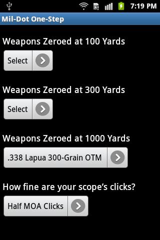 A sniper inputs his rifle's caliber, whether it is sighted in at 100, 300 or 1000 yards and whether the clicks on his scope are one eighth, one quarter or one half MOA.