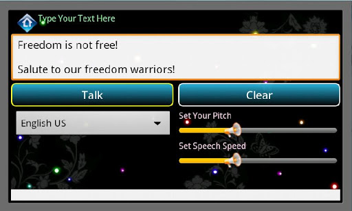 •Simply type and it speaks for you in local accents. You can dynamically change male or female voices, and choose the speed of speech etc.
