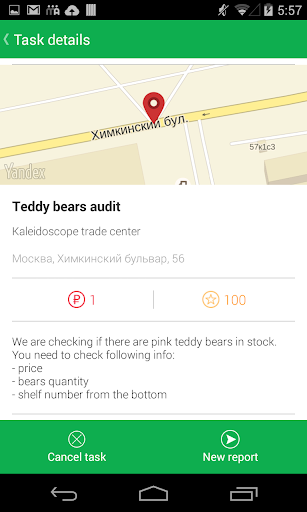 Example of a task: you'd go to a store and check availability of certain goods, their prices, advertisement, etc. Another eample: you'd find some objects located on a certain address and take pictures of them. And that's all - money's yours!