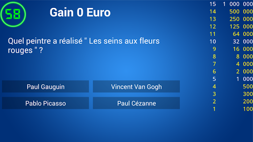 Millionaire Quiz est une application qui contient des questions de la culture générale.