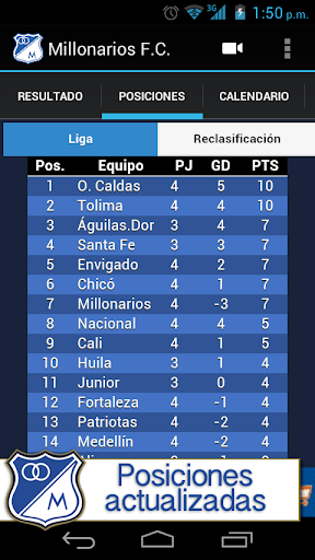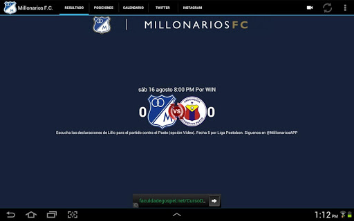 Aplicación De Millonarios F.C. de Hinchas para Hinchas encuentra ultimas noticias facebook de millos, imágenes del club Embajador, actualización al instante de los resultados liga postobon y copa libertadores de américa, rumores de contrataciones todo del equipo mas grande de Colombia el equipo albiazul . Apoya la aplicación de millos fc., encuentra información de millos en el Fútbol profesional colombiano, Copa Postobon, Liga Postobon y Copa libertadores.