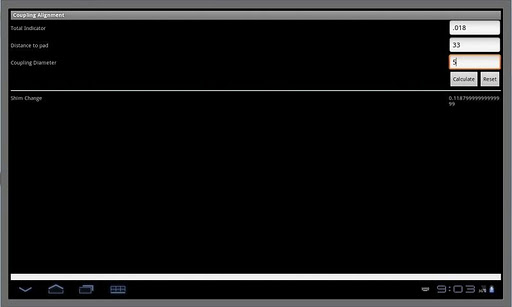 Calculator for figuring shim change on coupling alignment.