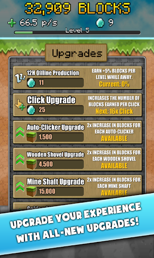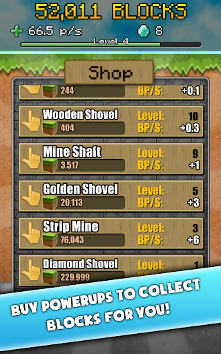 * Spend your blocks in the shop to buy machines that generate blocks all the time!