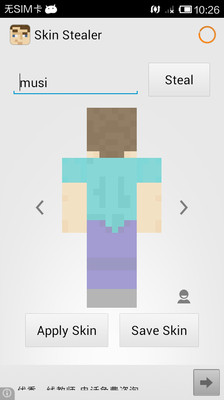 《Minecraft皮肤偷取器(Skin Stealer for Minecraft)》可以帮助你把别人好看的皮肤都扒下来,并且应用到自己的MC角色中去。输入别人的用户名,就能查看别人的皮肤,并点击应用和保存即可偷取。比如输入Etho,看到这位用户的卡卡西衣服没有,扒下来吧。皮肤可以应用到PC端的MC和手机端的PE版。