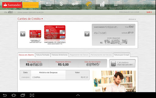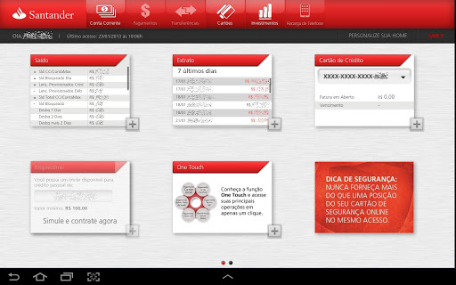 As transações realizadas através do aplicativo “Minha Conta PF para Tablet” são consideradas transações do Santander Internet Banking.