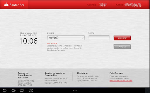 O aplicativo "Minha Conta PF para Tablet" do Santander oferece para você, que é correntista Pessoa Física do Banco Santander no Brasil, mais uma forma de acessar e movimentar a sua conta de maneira prática e rápida. Este aplicativo está disponível apenas em Português e é destinado aos correntistas do Santander no Brasil.