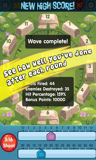 - Aim at the purple enemies with Clock's hour-hand