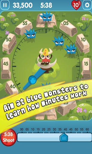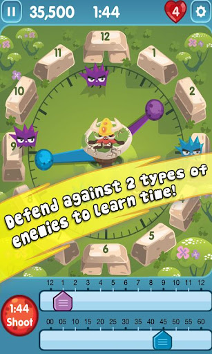 Defend your stonehenge base and have fun shooting monsters while learning to tell time! Shoot the incoming enemies that approach your center fort. Your protection against the enemies is to aim your cannons positioned in a "Clock" formation.