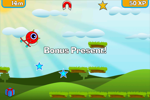 The skating minigmae is great fun! You jump and slide along the platforms collecting stars for xp and lots of funky powerups, like the magnet which pulls goodies to you, the spring which bounces you high in the air and the Heart which saves your life.