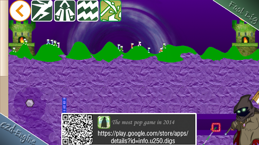 The goal of Fool Dig is to dig tunnels or makes road that lead the BBMan to the gold and his friends(Named "Ka"), then back to the tower platform.