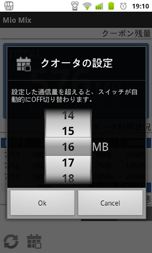 あらかじめ設定した容量を超えたときにクーポンを自動的にOFFにする機能です。クーポンON時におけるモバイル経由の通信量を計測します。