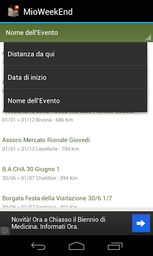 - Scheda Evento corredata di periodo e, in caso sia disponibile, del numero di telefono dell'organizzatore.