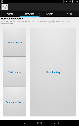 MissionMode Mobile also provides users access to the MissionMode Situation Center Suite, to notify and collaborate with individuals and teams during the time of a crisis. Whether its incident or crisis management, emergency notification, or business continuity, you can execute, participate and review the status of your response plan in action.