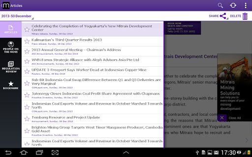 Nifty little app, isn’t it? Our app is designed with easy navigation between articles to make reading the news more enjoyable for you. Imagine, the latest update of the Indonesian mining industry at your fingertips.