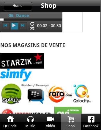 Cette application intègre un Qr Code qui vous permettra de flasher des qr code dans la rue, dans le métro et d'obtenir des promotions ou réductions sur nos titres musicaux.