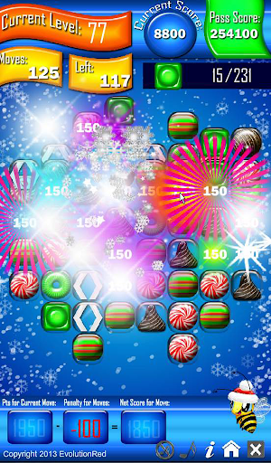 For the sweet love of candy…EvolutionRed presents Mo’ Candy Christmas & Holiday Edition, a charming match three game for all the candy lovers in the world. Be dazzled by incredible chain reactions every time you make a match. Make big matches for a cascade of delightful candy explosions. With 100 levels of candy coated winter worlds, this game is simple enough for children or beginners but gradually increases in complexity to challenge even the most experienced gamer.