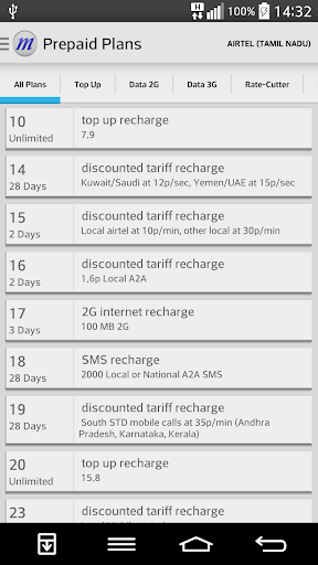 - Recharge plans for all the supported operators, which are updated on a daily basis.
