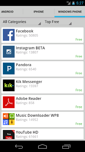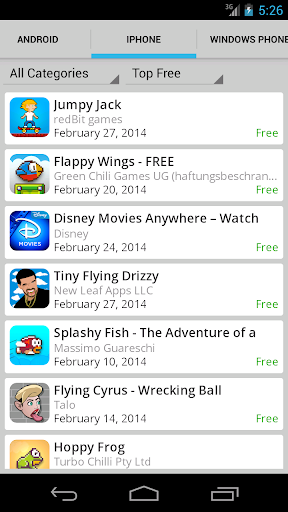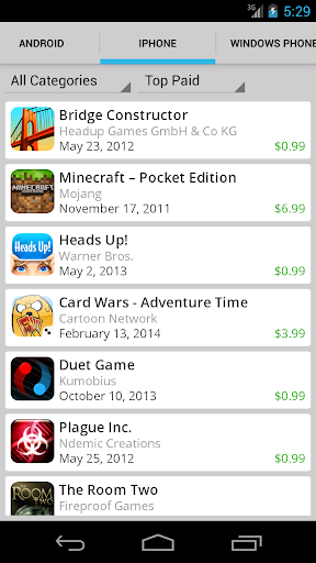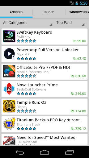 - Top free, Top Paid ,Top Grossing and other apps are available.