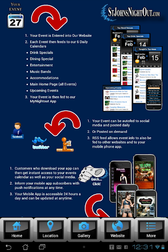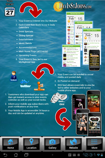 Additionally, MyNightOutPhone intergrates with Business profiles on DayIn & NightOut Websites like StJohnsNightOut.com and DayInStJohns.com. or your city.