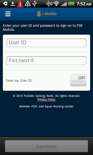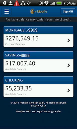 Start banking wherever you are with Mobile FSB for Android! Available to all Franklin Synergy Bank online banking customers. Mobile FSB allows you to check balances, make transfers, pay bills, make deposits and find locations. Need to find a Branch or ATM closest to you? With Find Near Me, Mobile FSB will discover your location and provide you with addresses and phone numbers on the fly.