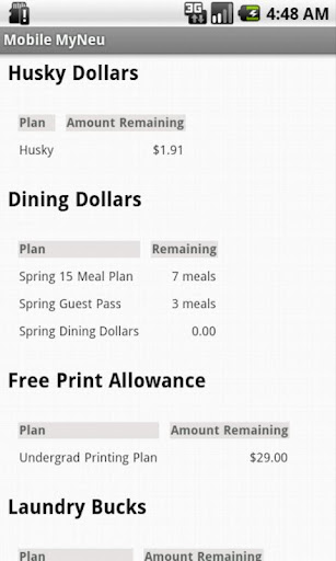 Mobile MyNeu distills the MyNeu website into what is most necessary for a mobile user, and reformats the page into a touch-friendly format.