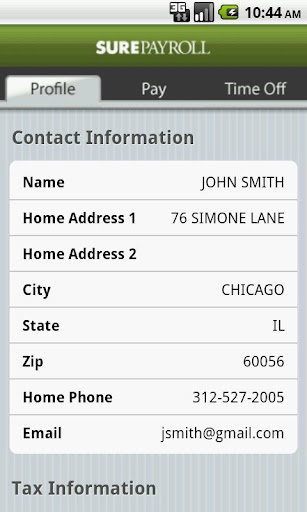 -View contact, state and federal tax information including marital status, dependents and extra withholding