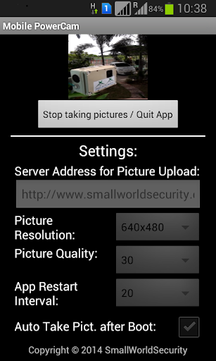 - Start the process of taking pictures by clicking the button "Take Pictures" (App restarts after taking pictures according to the set interval)
