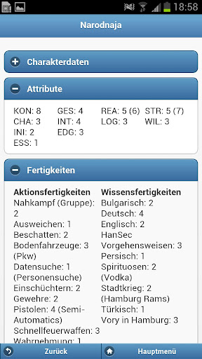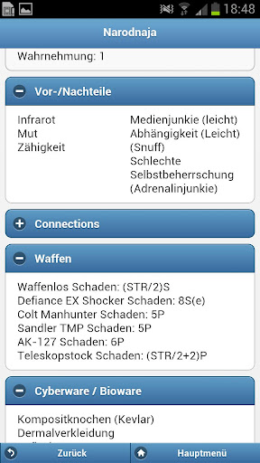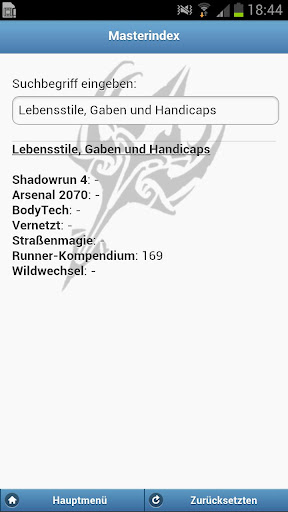 If this description fits you, the Mobile Runner is the perfect app for you. Separate functions for simple and extended tests, as well as a virtual dice cup for the spontaneous roll. Characters made with the Chummer character generator can be imported via internet. Finally you can use the master index for easy finds of keywords.